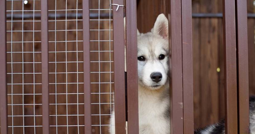 - Надёжным и прочным. Для чего ограждающие конструкции подбирают в соответствии с особенностями породы – размером, весом, агрессивностью. Собака при всем желании не должна его сломать. С этой же целью калитку делают открывающейся внутрь помещения, чтобы животное не сумело её расшатать, бросаясь на дверь.