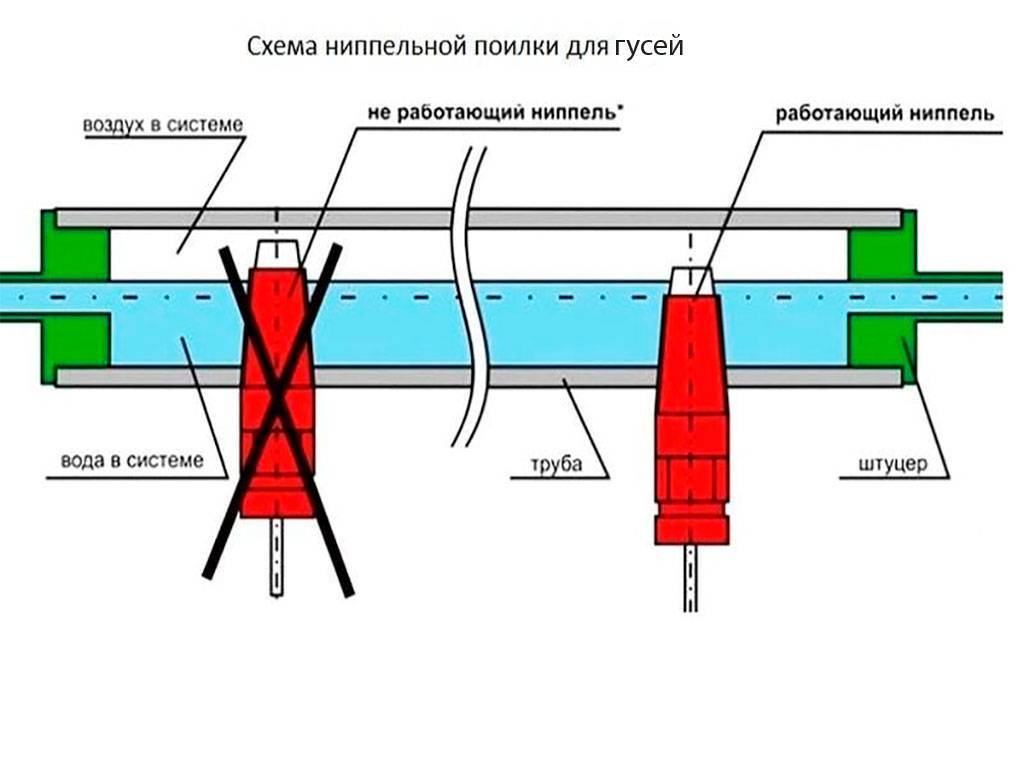 Важно правильно подобрать количество ниппелей и в соответствии с предъявляемыми требованиями расположить их на трубе. Практика показывает, что оптимальная нагрузка на 1 ниппель — 10 голов уток или 8 голов гусей