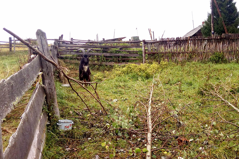 Когда козы гуляют на полях недалеко от дома, за ними тоже нужно присматривать. Однажды наши козы ушли вчетвером в лес. Мой муж искал их трое суток, но не нашел. Спустя еще трое суток они сами вышли из леса на другом конце села. Мы предполагаем, что их напугал медведь, из-за чего они убежали и потерялись.