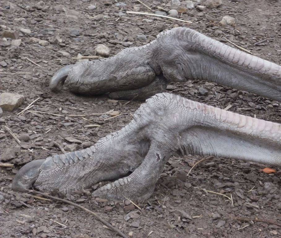 Задние ноги страуса длинные, сильные и мускулистые, с двумя пальцами, причем только один из них имеет на конце своеобразное копытце, служащее опорой во время бега.