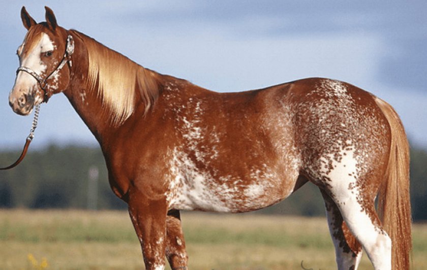 - Максимальное окрашивание — классические белые брызги на животе и полностью такого же цвета ноги. Образно описать этот окрас можно так — конь пробежал через глубокую лужу, полную белой краски, и испачкался в ней. Линия верха животного обычно сплошная, тёмная.