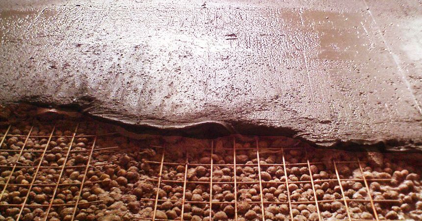 Утеплённый бетонный пол. На фото: заливка стяжки с керамзитом