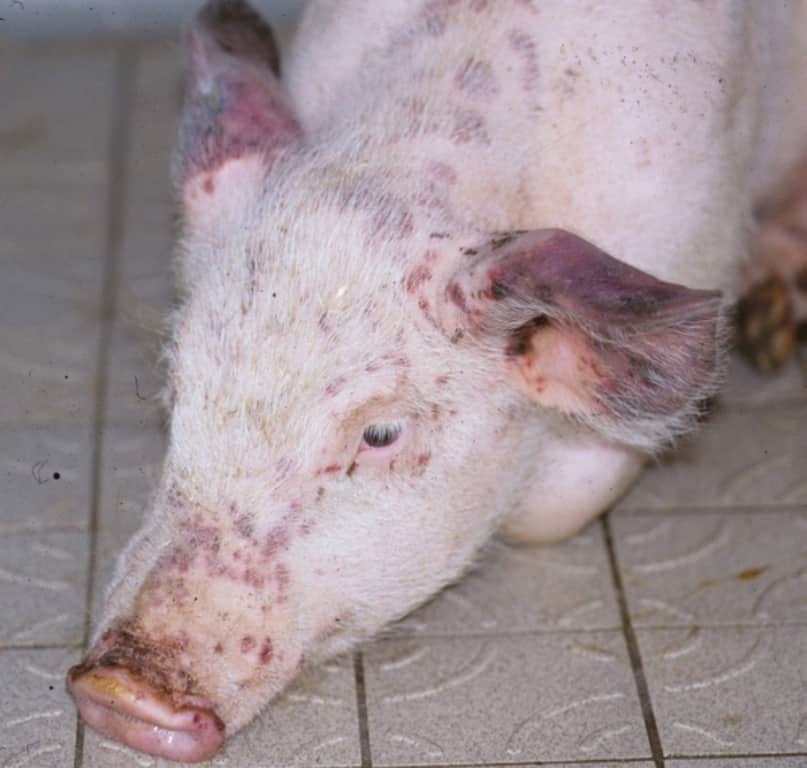 Симптомы болезни свиней «рожа»